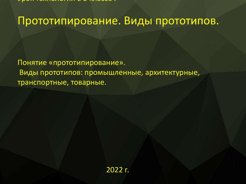Урок технологии в 8 классе :Прототипирование. Виды прототипов.