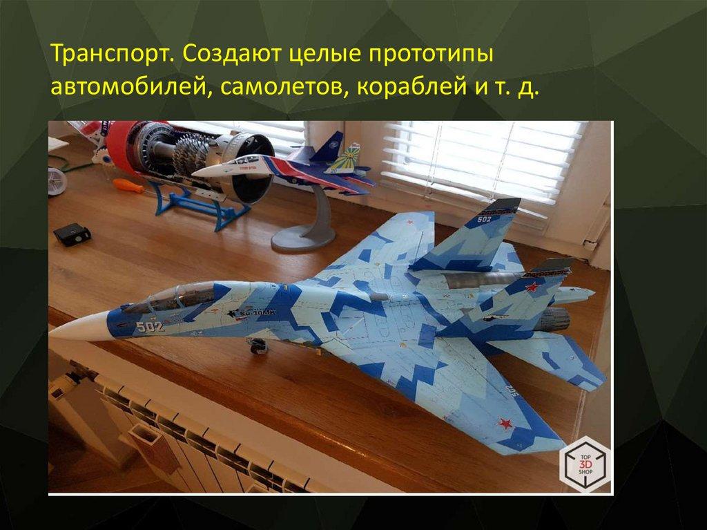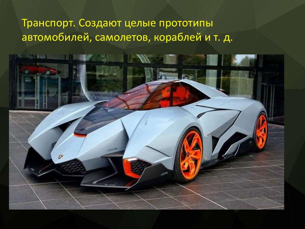 Транспорт. Создают целые прототипыавтомобилей, самолетов, кораблей и т. д.