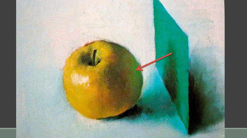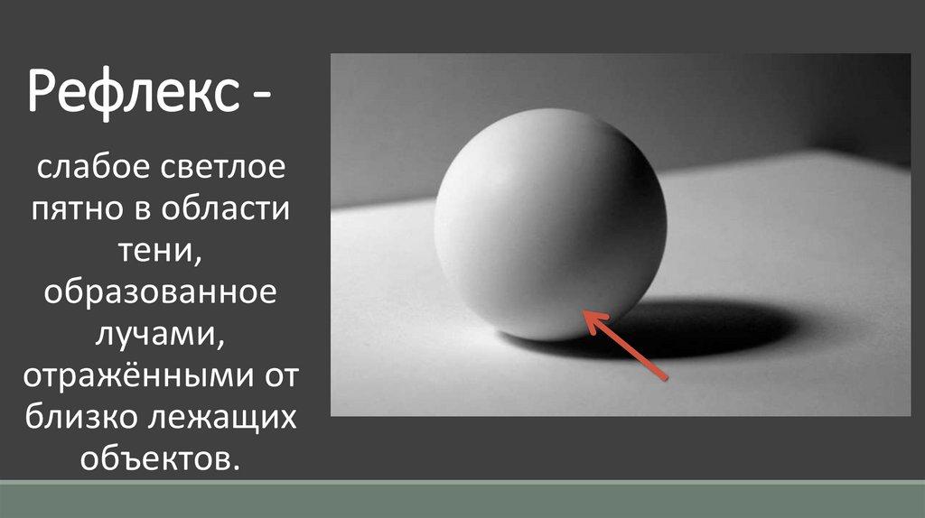 • Рефлекс темнее освещённой части предмета, но светлее