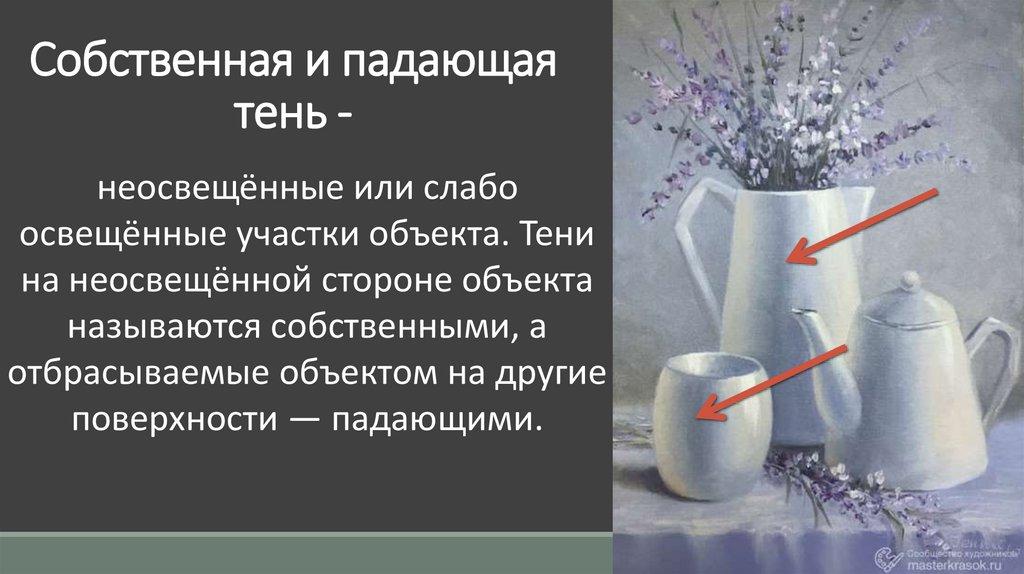 Собственная и падающаятень неосвещённые или слабо