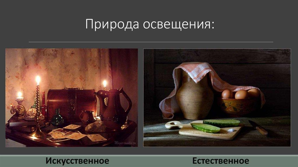 Природа освещения:Искусственное