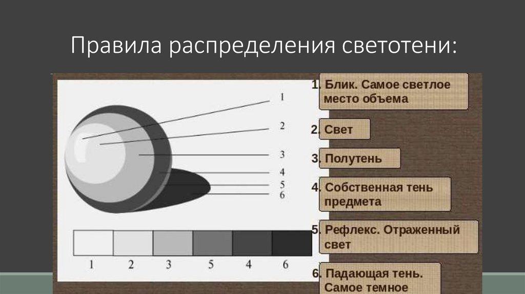 Правила распределения светотени:6.