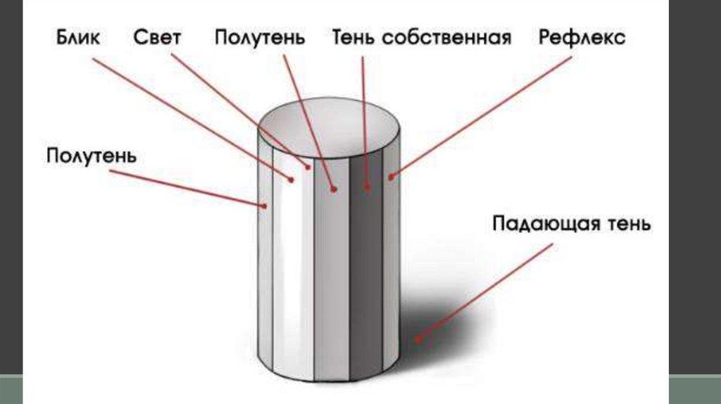 собственная тень, рефлекс и тень падающая)