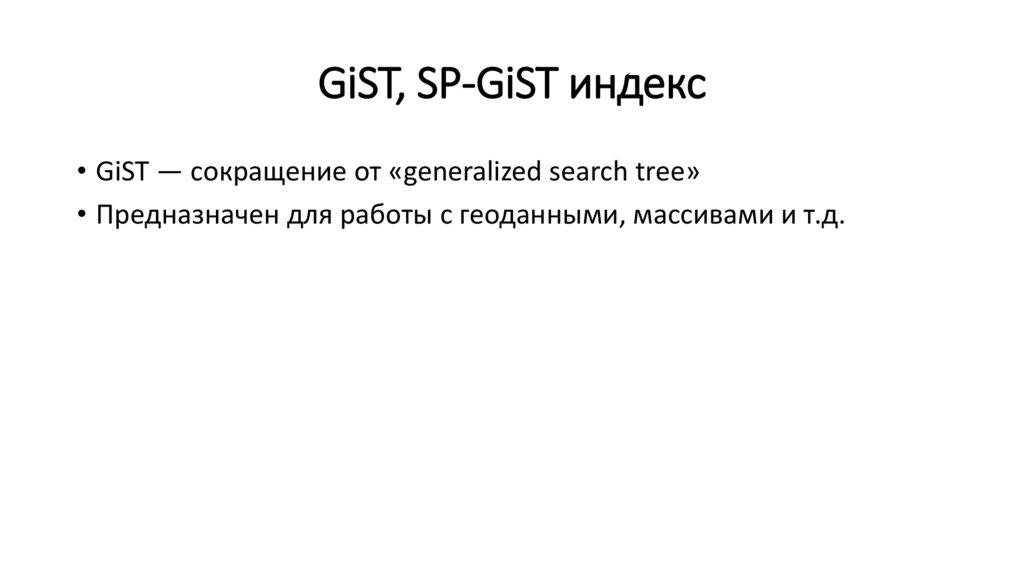 GiST, SP-GiST индекс• GiST — сокращение от «generalized search tree»
