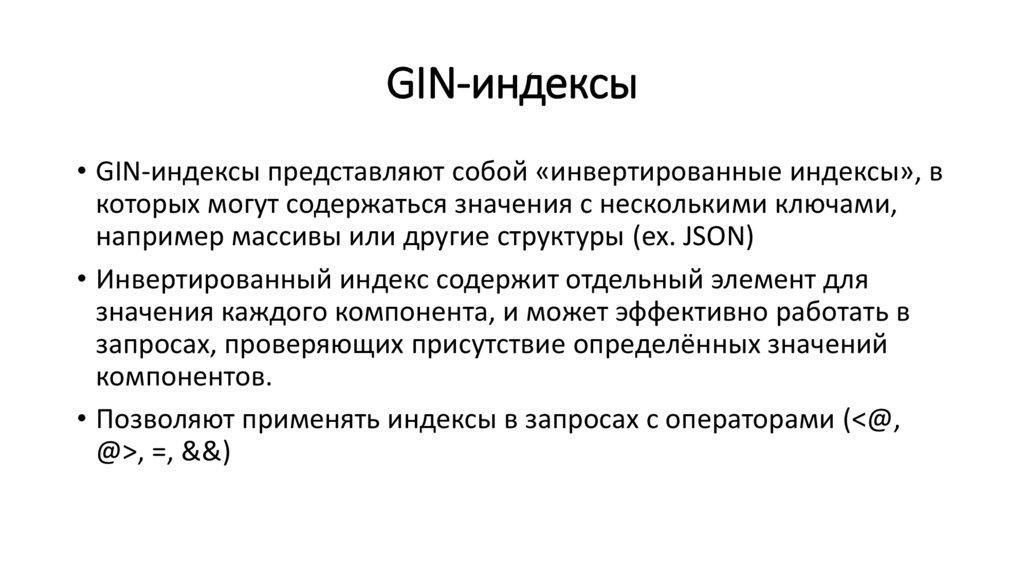 GIN-индексы• GIN-индексы представляют собой «инвертированные индексы», в