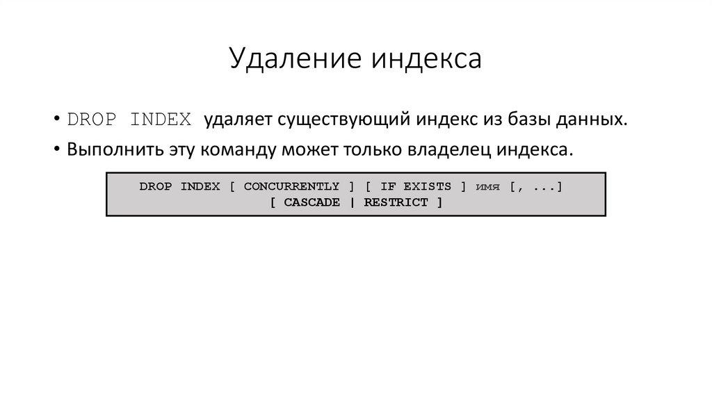 DROP INDEX [ CONCURRENTLY ] [ IF EXISTS ] имя [, ...]