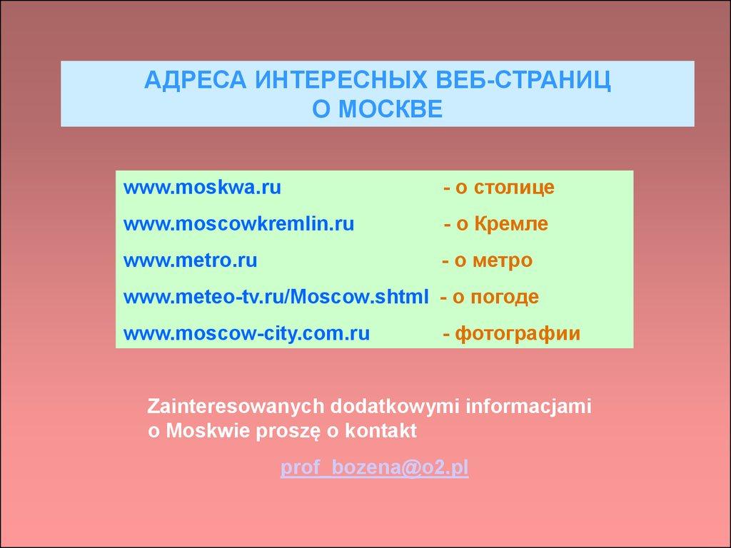 АДРЕСА ИНТЕРЕСНЫХ ВЕБ-СТРАНИЦО МОСКВЕ