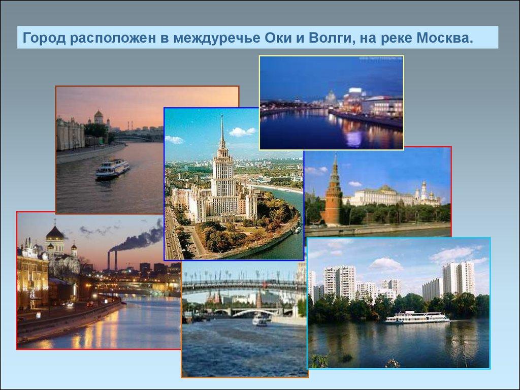 Город расположен в междуречье Оки и Волги, на реке Москва.4.
