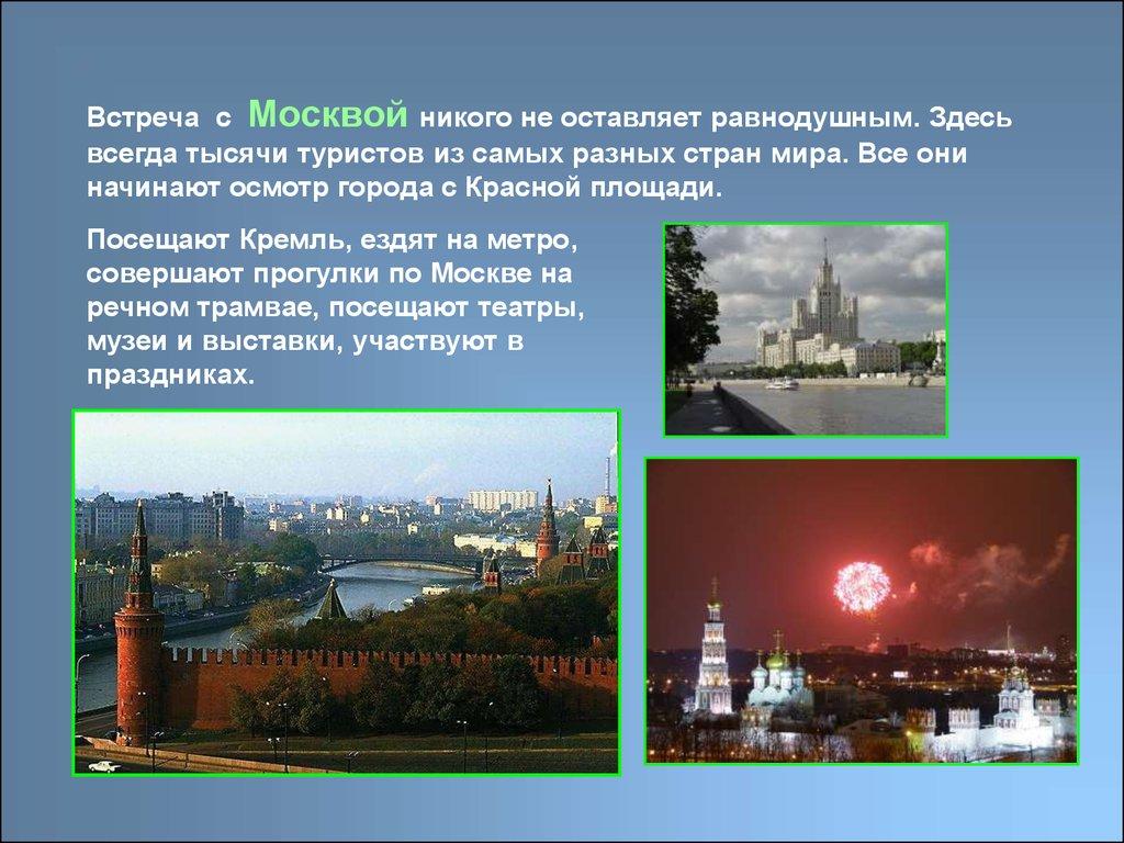 Встреча с Москвой никого не оставляет равнодушным. Здесьвсегда тысячи туристов из самых разных стран мира. Все они