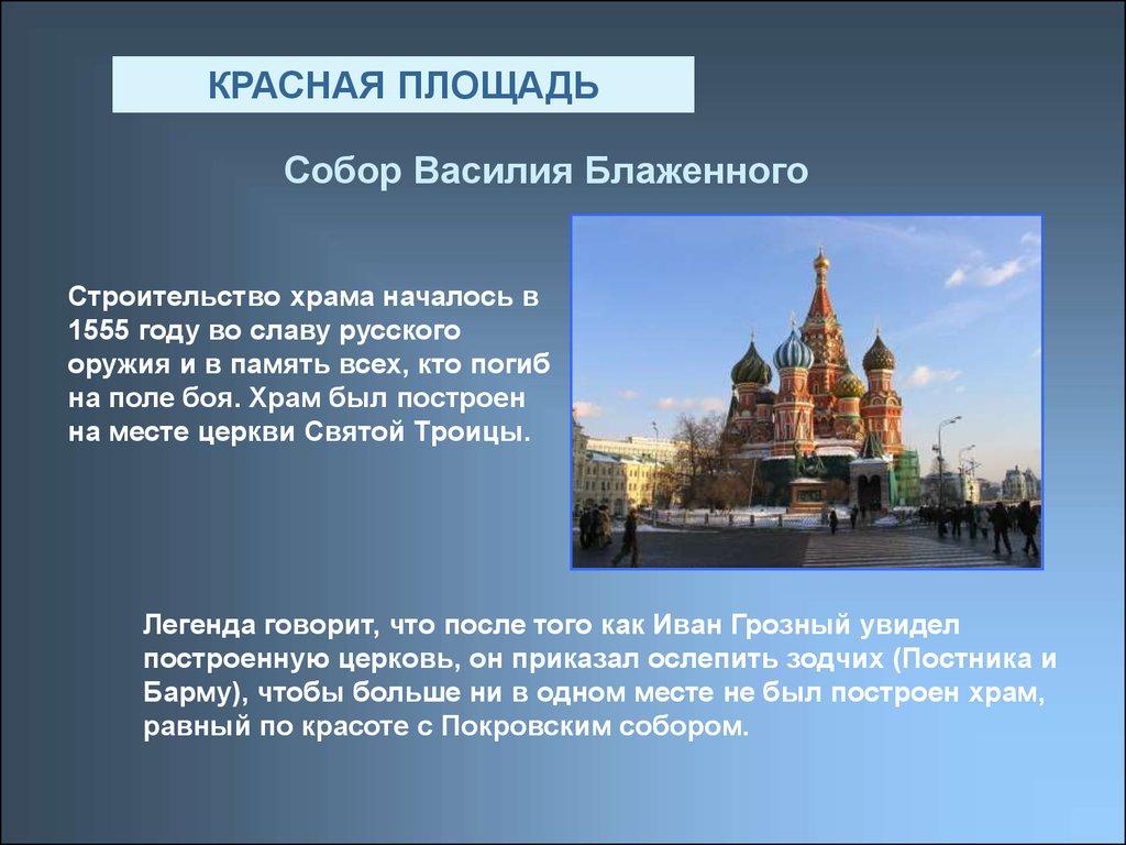 КРАСНАЯ ПЛОЩАДЬЭто главная площадь Москвы. Она находится в центре города. Здесь