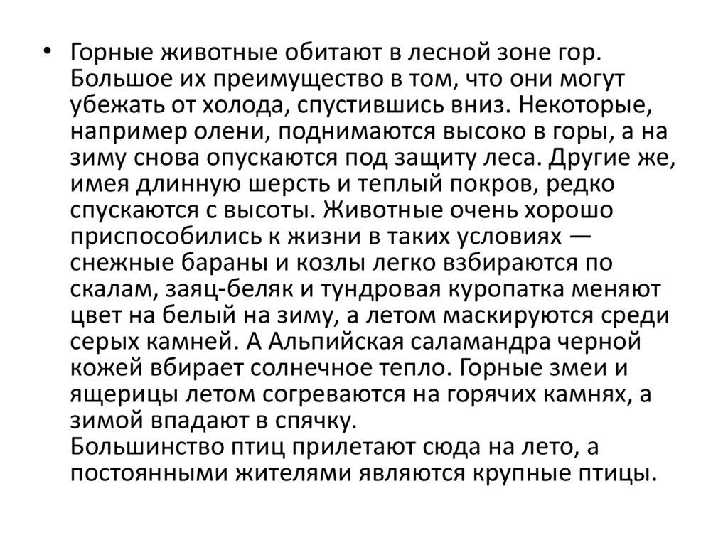• Горные животные обитают в лесной зоне гор.Большое их преимущество в том, что они могут