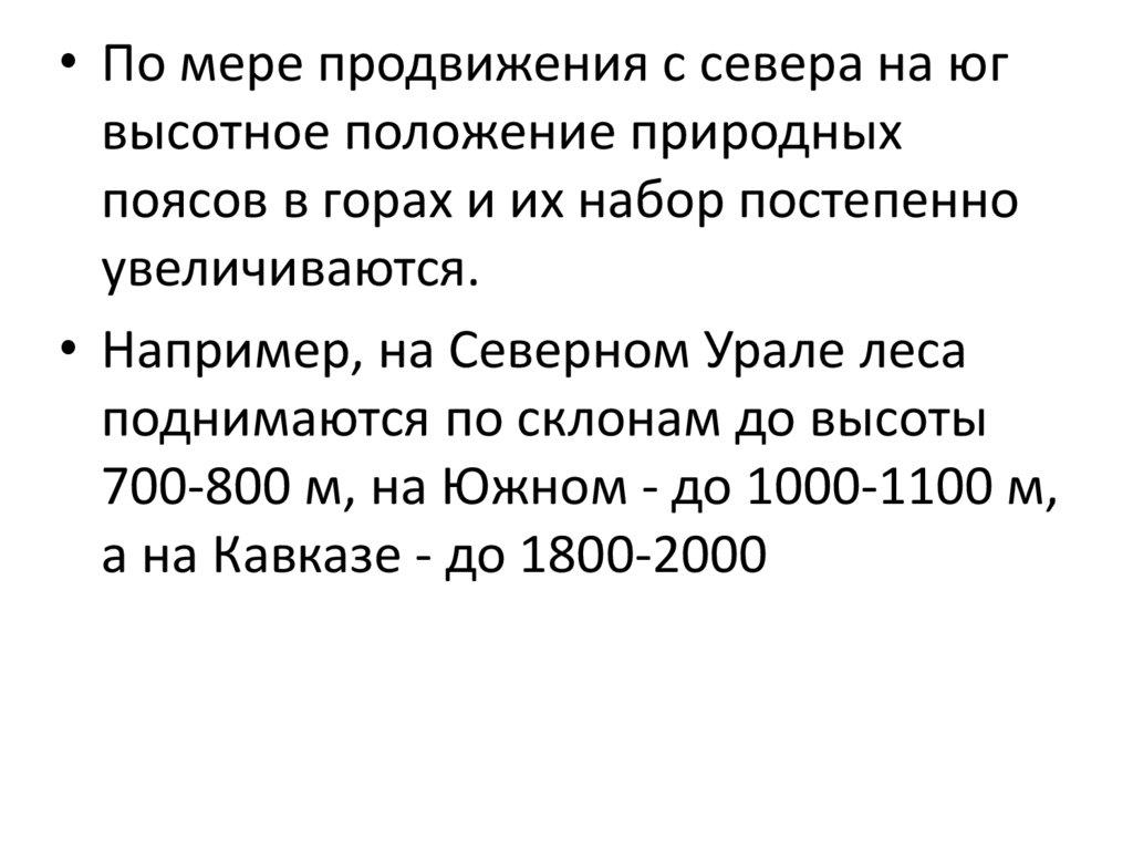 • Высотная поясность — закономернаясмена природных условий, природных зон