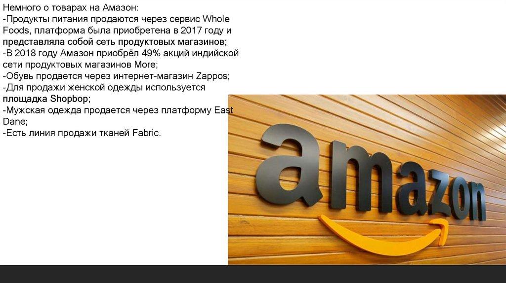 Немного о товарах на Амазон:-Продукты питания продаются через сервис Whole