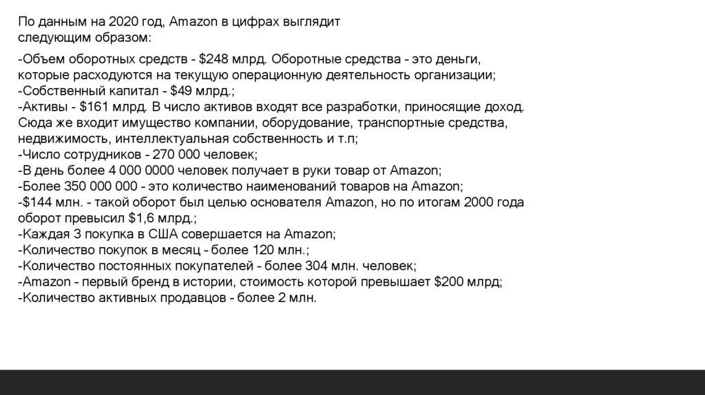 По данным на 2020 год, Amazon в цифрах выглядитследующим образом: