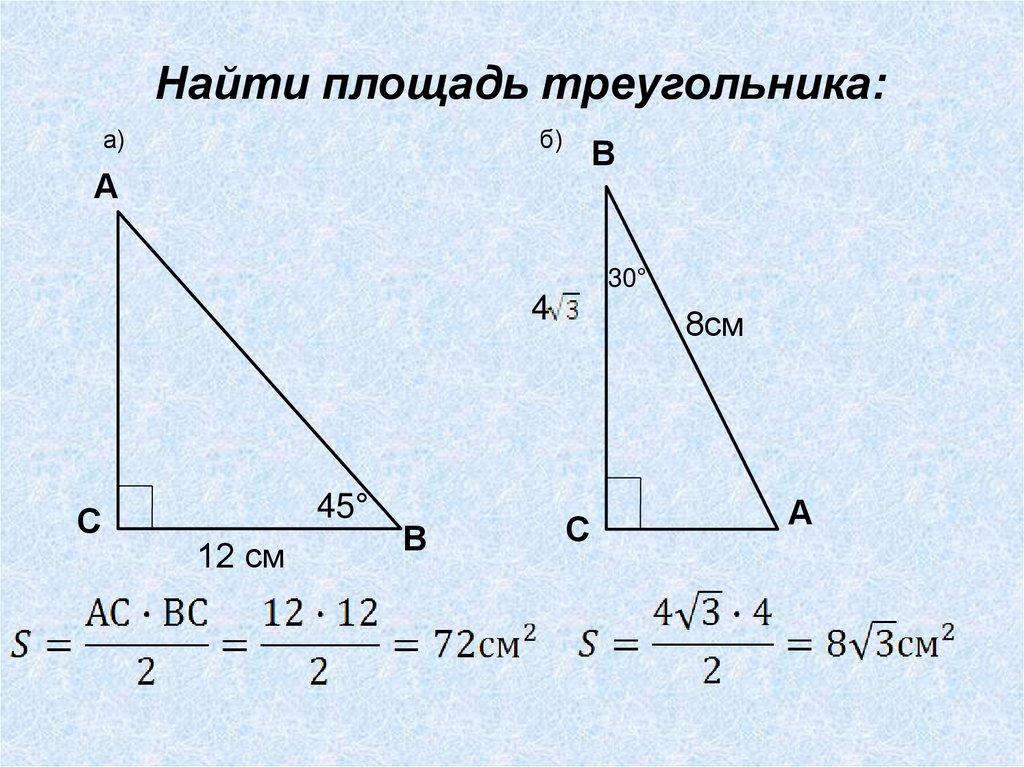 Найти площадь треугольника:а)