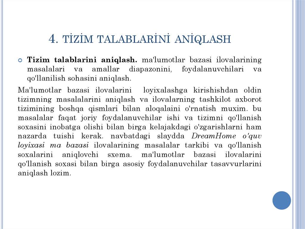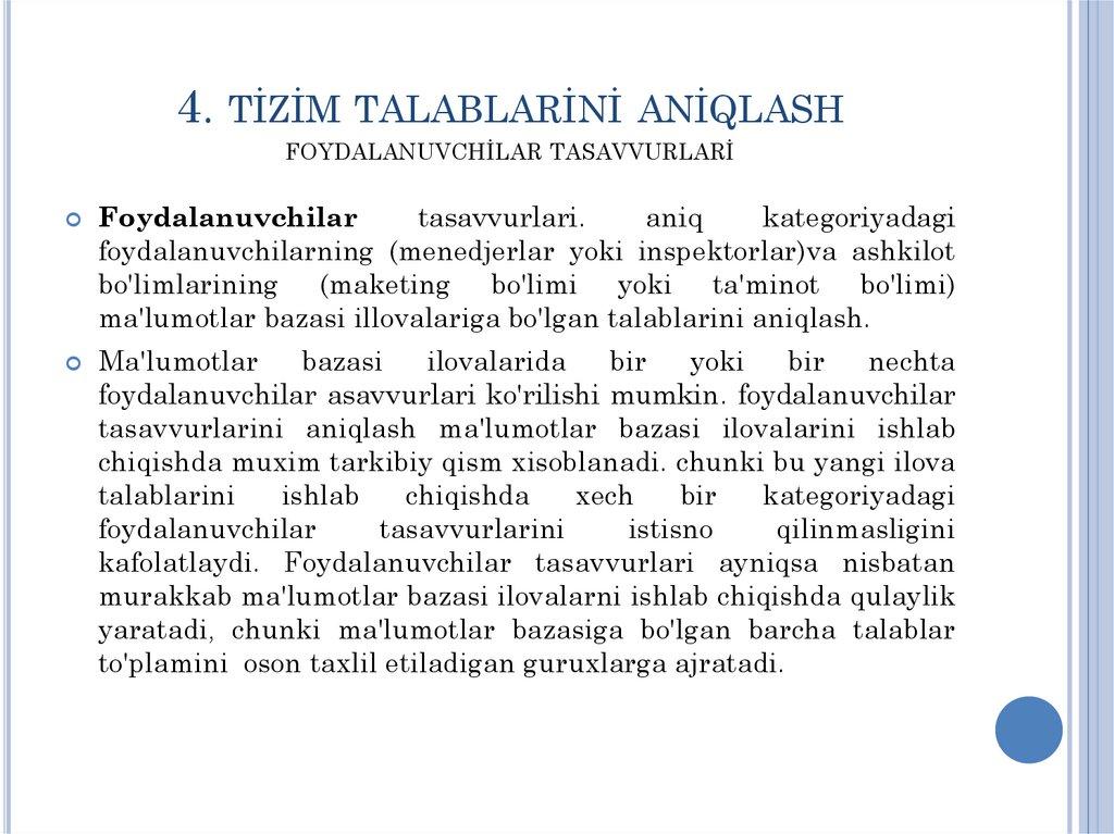 tizim talablarini aniqlash