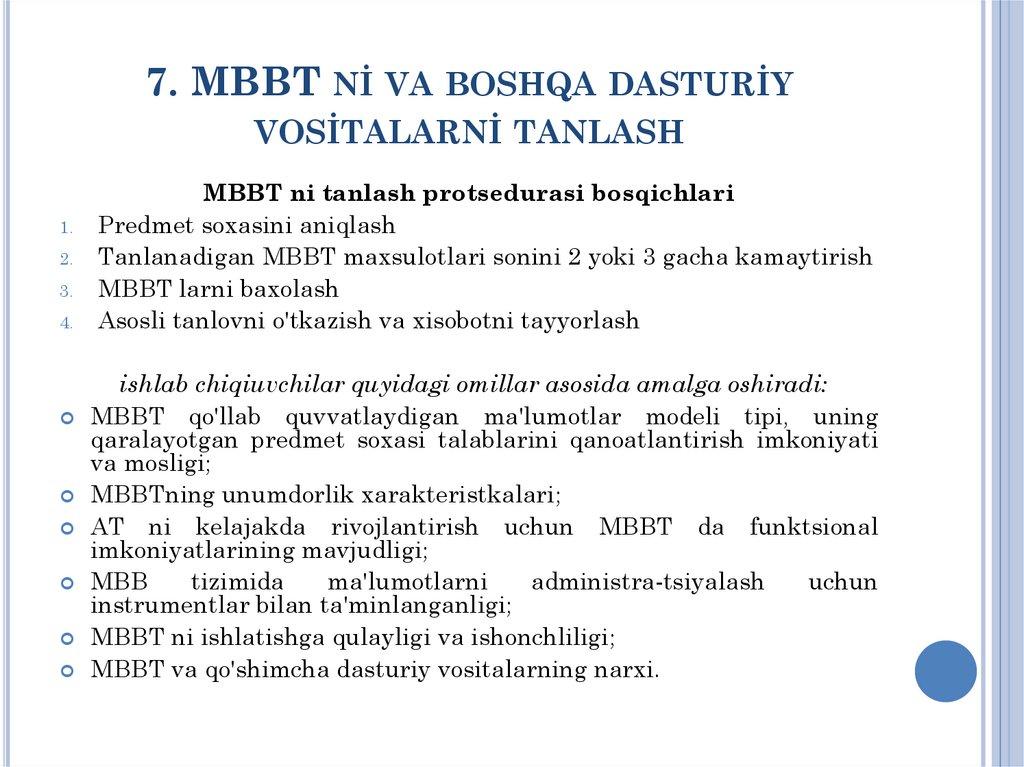 MBBT va boshqa dasturiy vositalarni tanlash