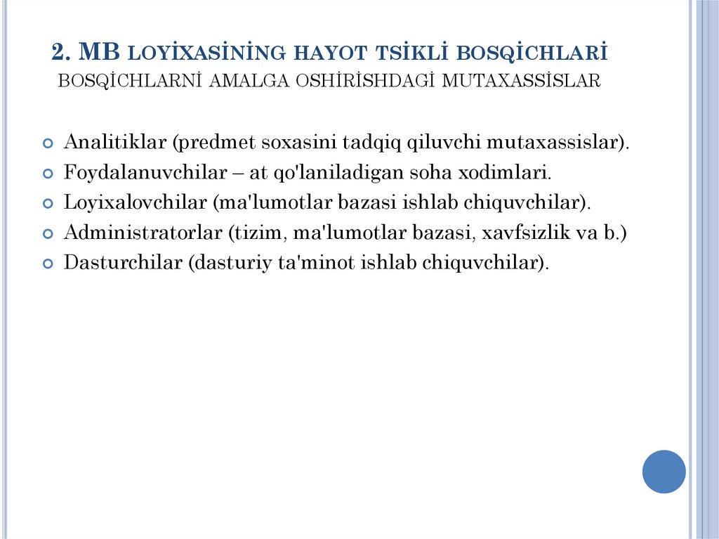 slayd: 2. MB ni loyixalashni hayot tsikli
