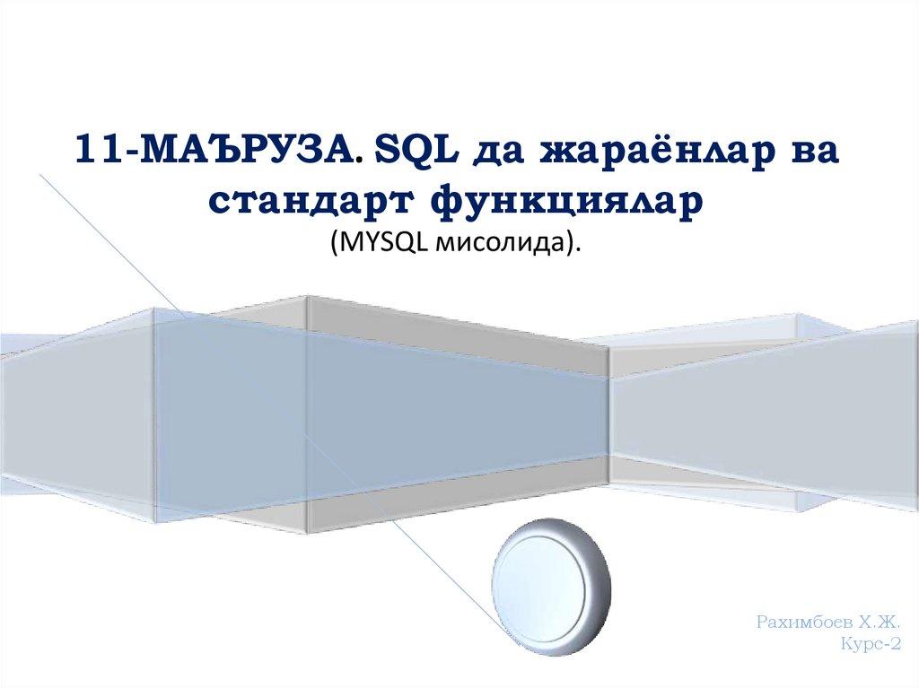 11-МАЪРУЗА. SQL да жараёнлар вастандарт функциялар