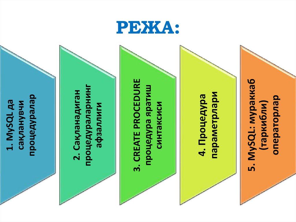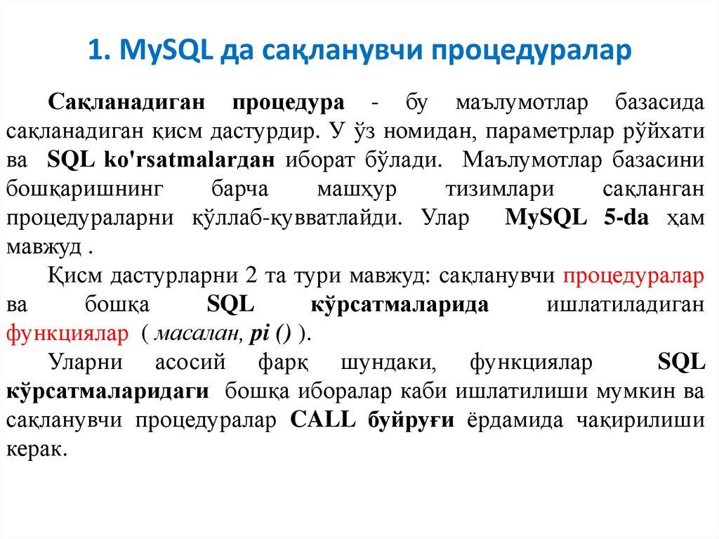 1. MySQL да сақланувчи процедураларСақланадиган процедура - бу маълумотлар базасида