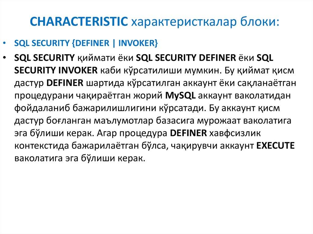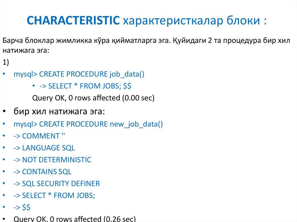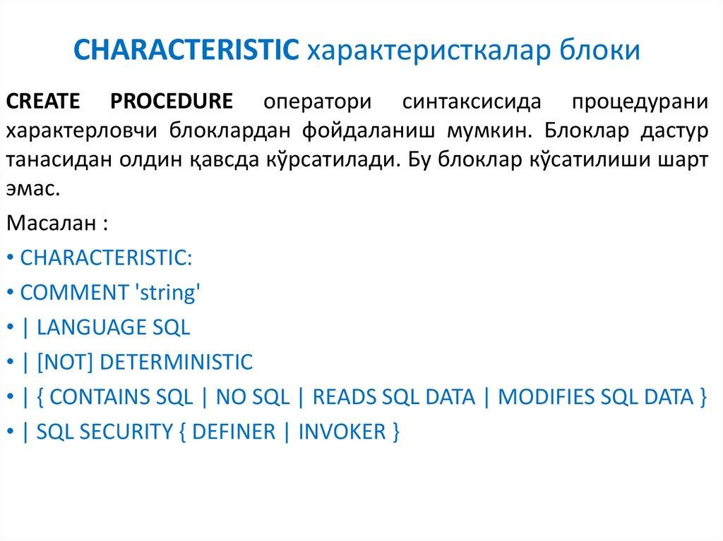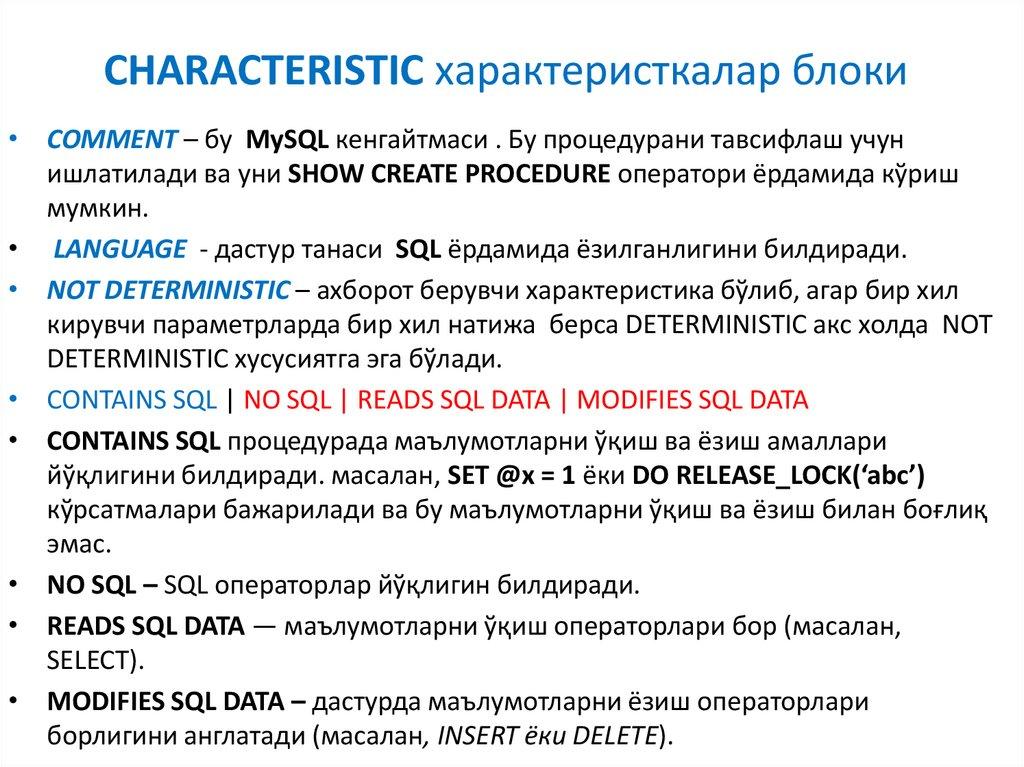 5. SQL процедуранинг характеристикалар блоки.