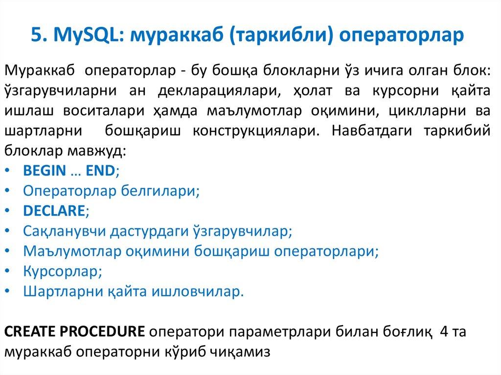 5. MySQL: мураккаб(таркибли)