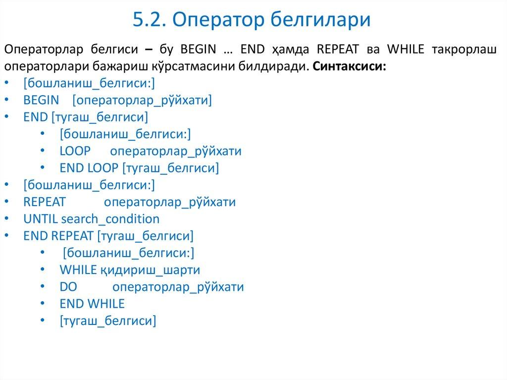 6. SQL процедуранинг таркибий (мураккаб) операторолари.