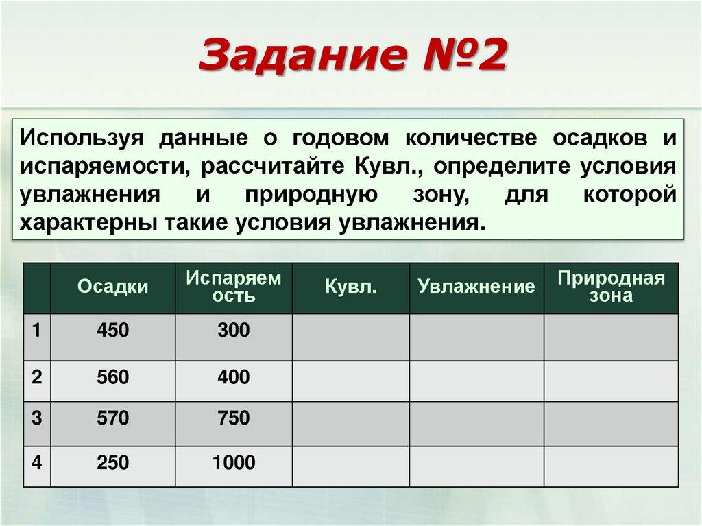 Задание №1Используя карты годового количества осадков и
