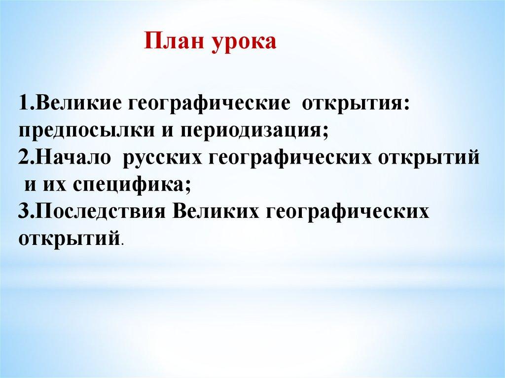 План урока1.Великие географические открытия: