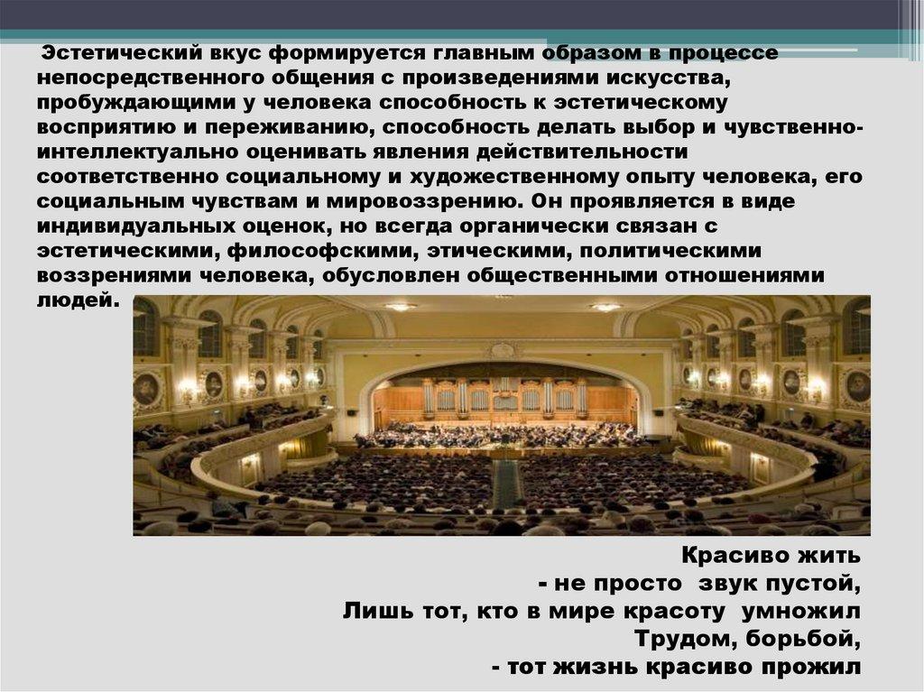 Эстетический вкус формируется главным образом в процессенепосредственного общения с произведениями искусства,