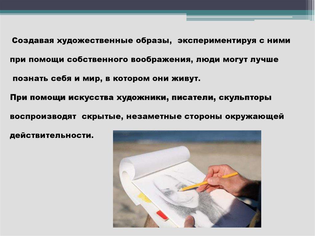 Создавая художественные образы, экспериментируя с нимипри помощи собственного воображения, люди могут лучше