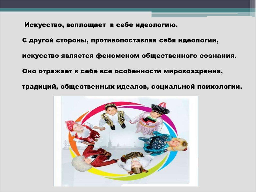 Искусство, воплощает в себе идеологию.С другой стороны, противопоставляя себя идеологии,