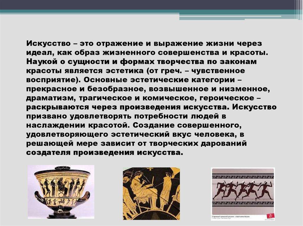 Искусство – это отражение и выражение жизни черезидеал, как образ жизненного совершенства и красоты.