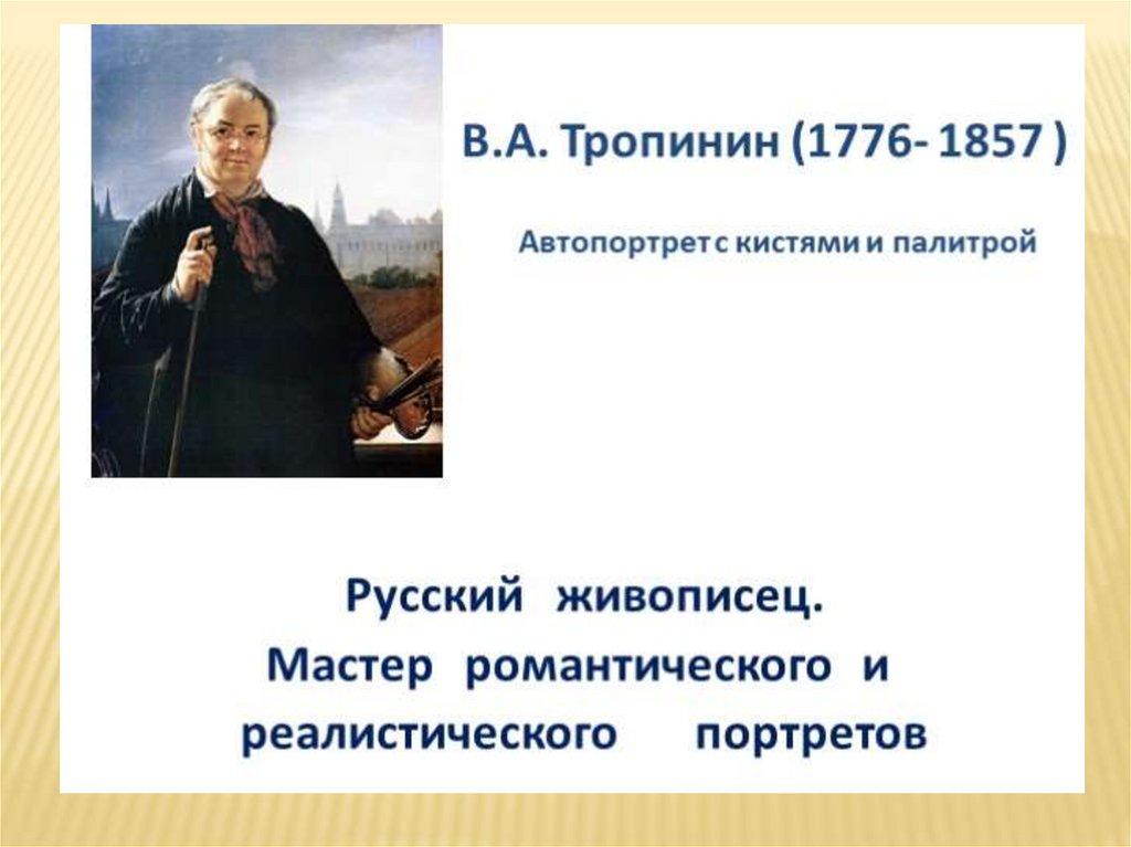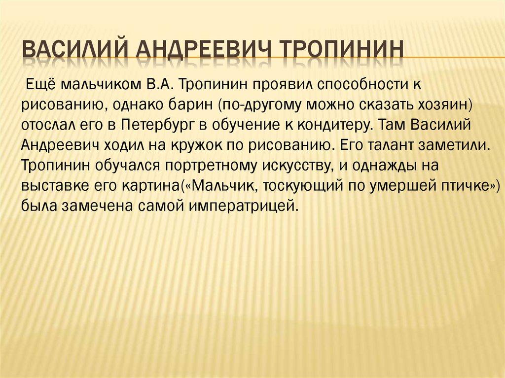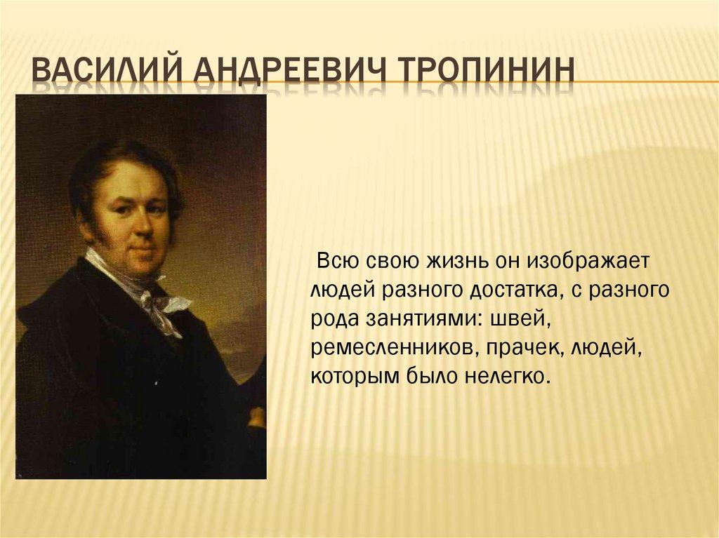 ВАСИЛИЙ АНДРЕЕВИЧ ТРОПИНИНЕщё мальчиком В.А. Тропинин проявил способности к