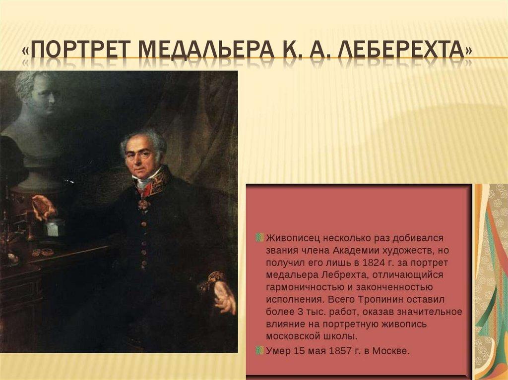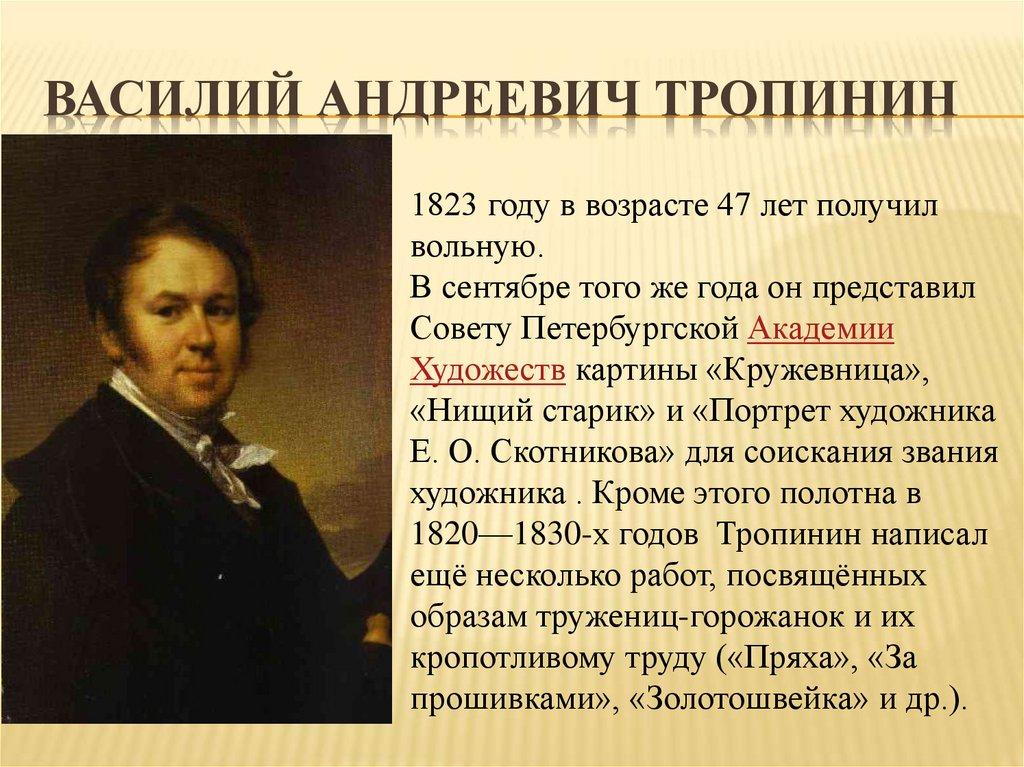 ВАСИЛИЙ АНДРЕЕВИЧ ТРОПИНИН1823 году в возрасте 47 лет получил