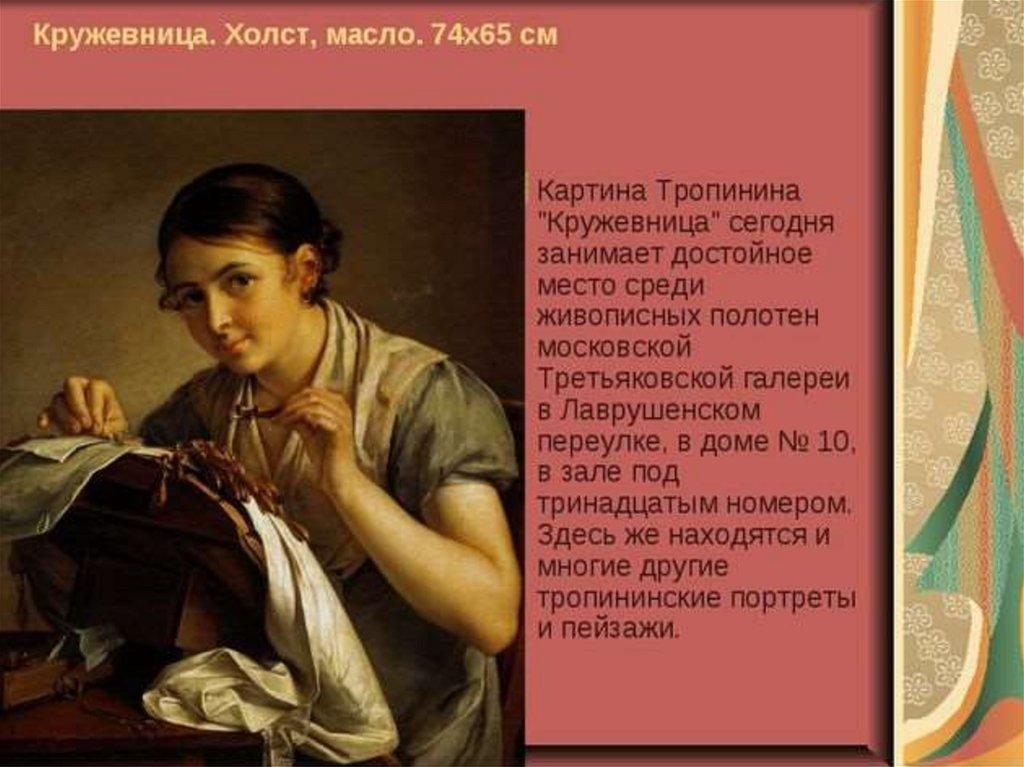 Сочинение по репродукции картины Василия Андреевича Тропинина «Кружевница»
