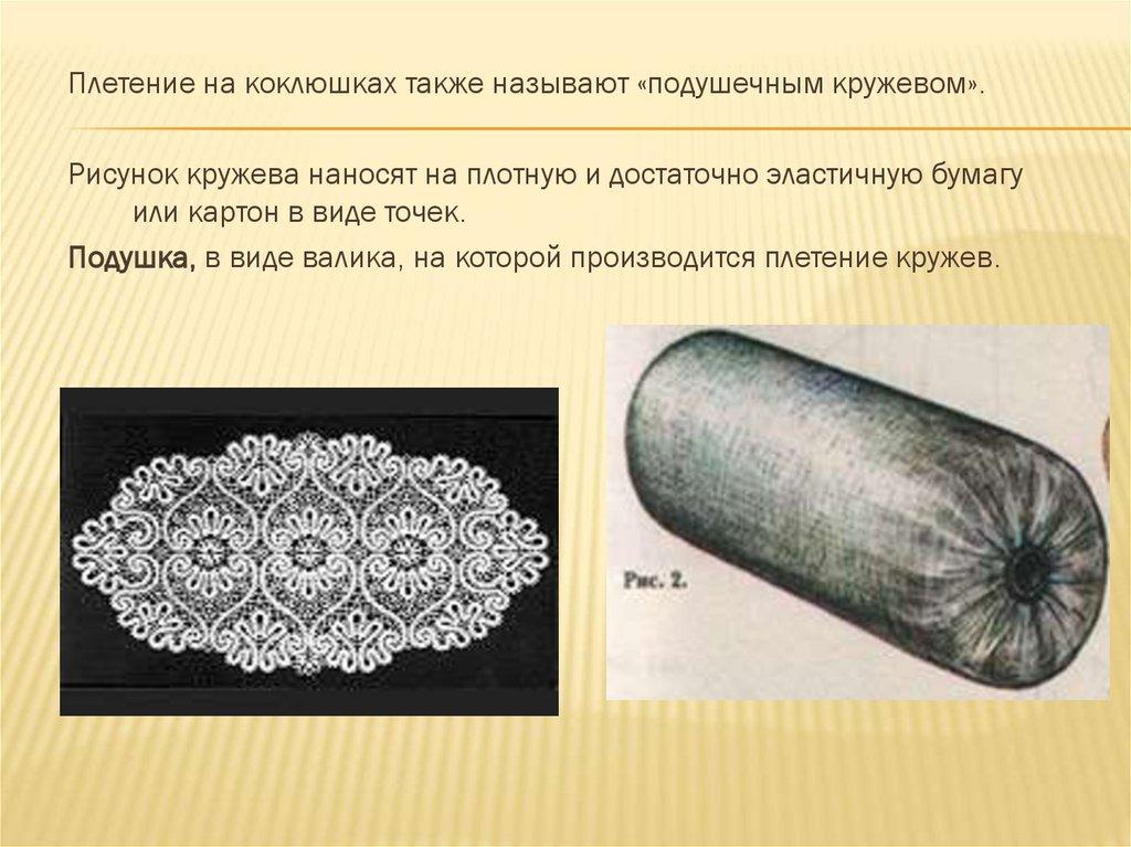 Плетение на коклюшках также называют «подушечным кружевом».Рисунок кружева наносят на плотную и достаточно эластичную бумагу