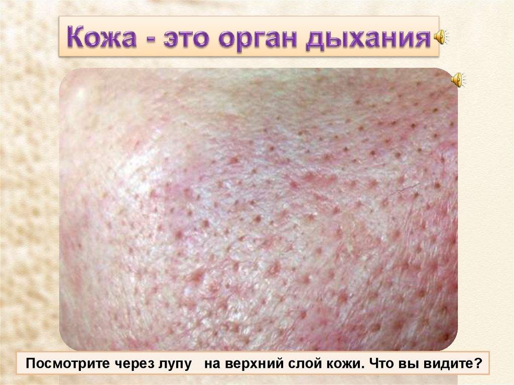 Посмотрите через лупу на верхний слой кожи. Что вы видите?13.