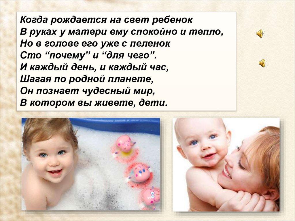 Когда рождается на свет ребенокВ руках у матери ему спокойно и тепло,
