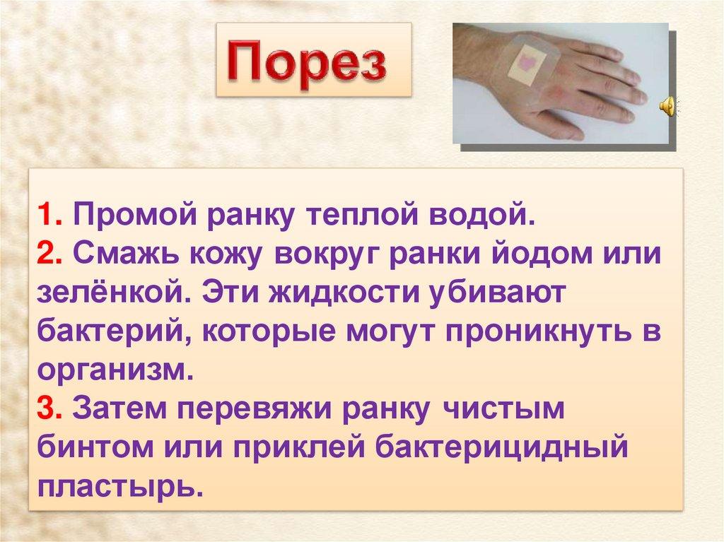 1. Промой ранку теплой водой.2. Смажь кожу вокруг ранки йодом или