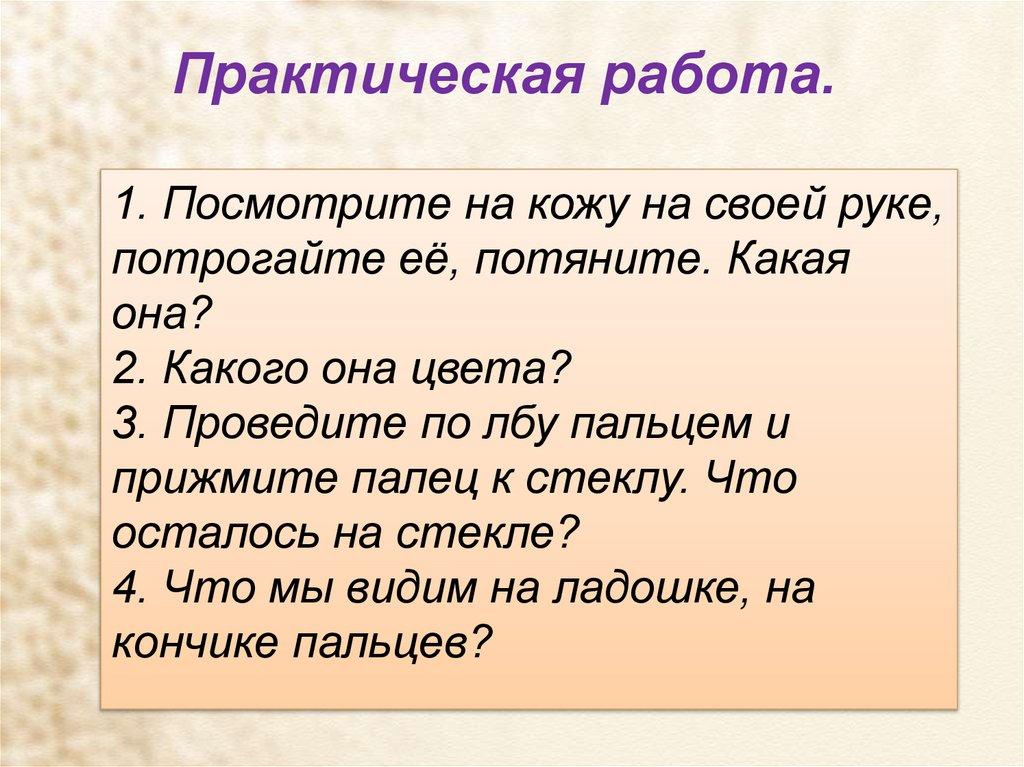 Практическая работа.1. Посмотрите на кожу на своей руке,