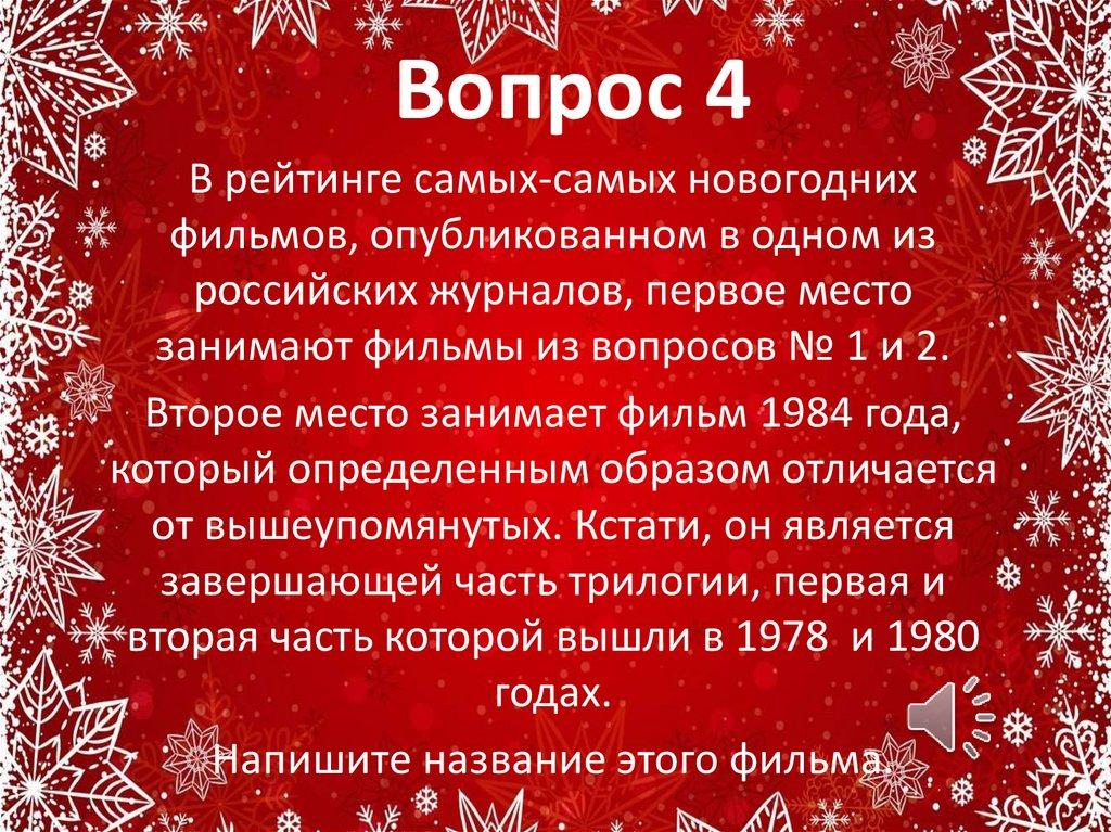 Вопрос 4В рейтинге самых-самых новогодних