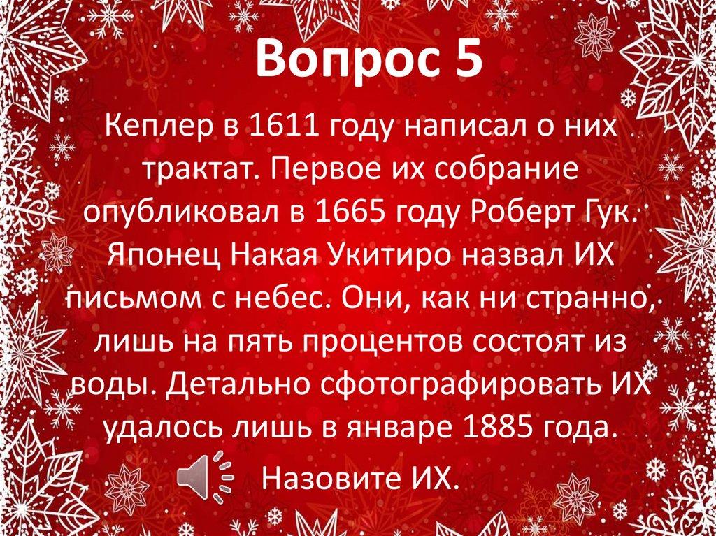 Вопрос 5Кеплер в 1611 году написал о них