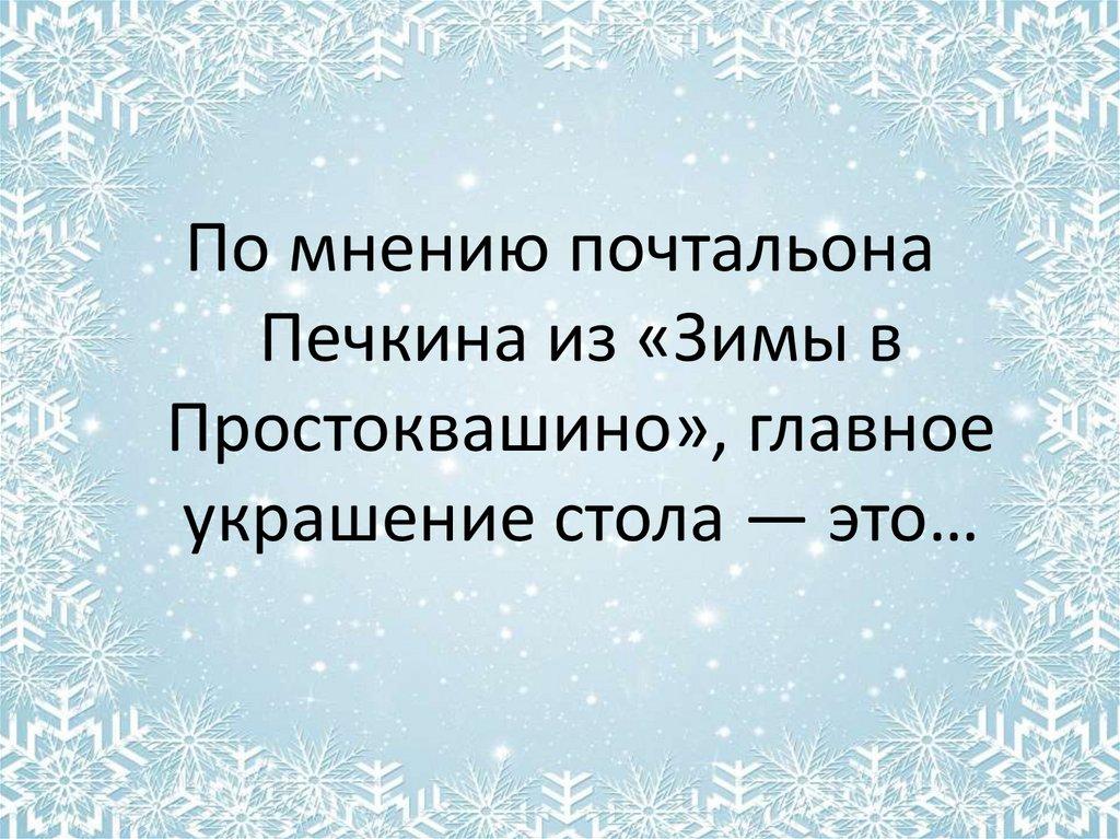 По мнению почтальонаПечкина из «Зимы в