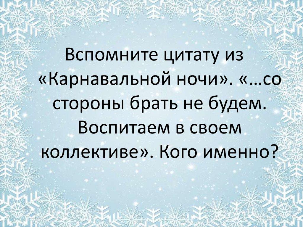 Вспомните цитату из«Карнавальной ночи». «…со