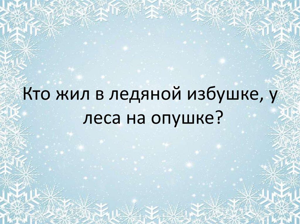 Кто жил в ледяной избушке, улеса на опушке?