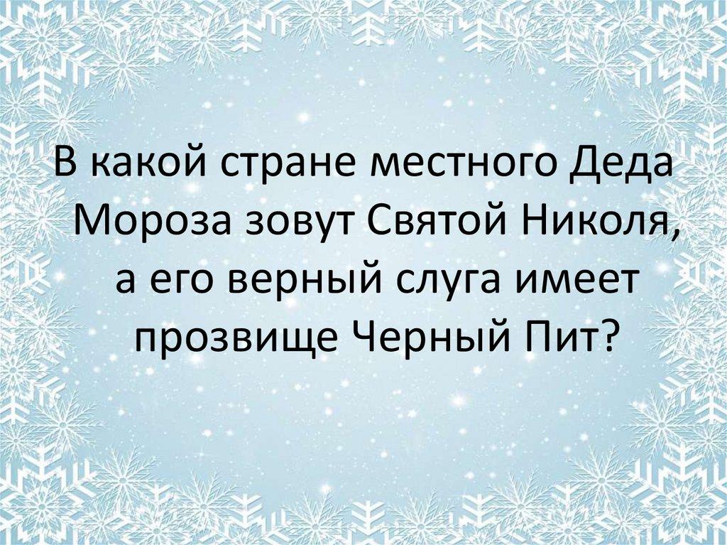 В какой стране местного ДедаМороза зовут Святой Николя,
