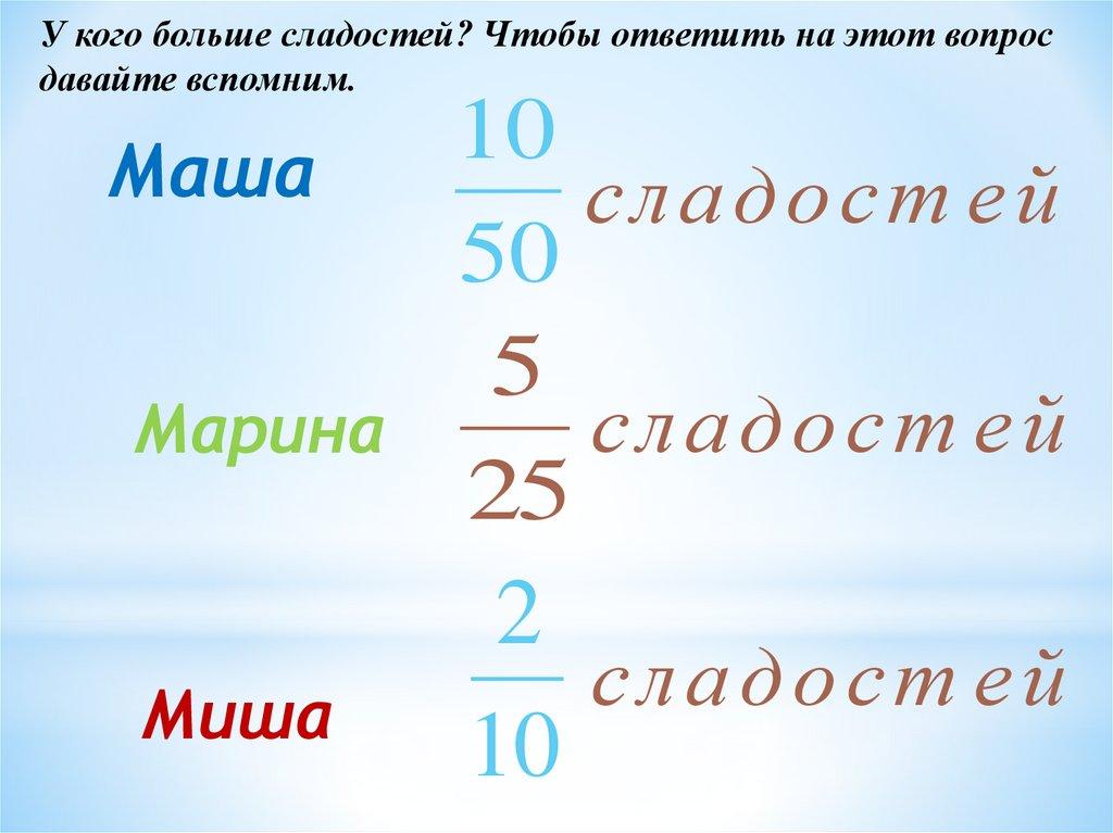 У кого больше сладостей? Чтобы ответить на этот вопросдавайте вспомним.
