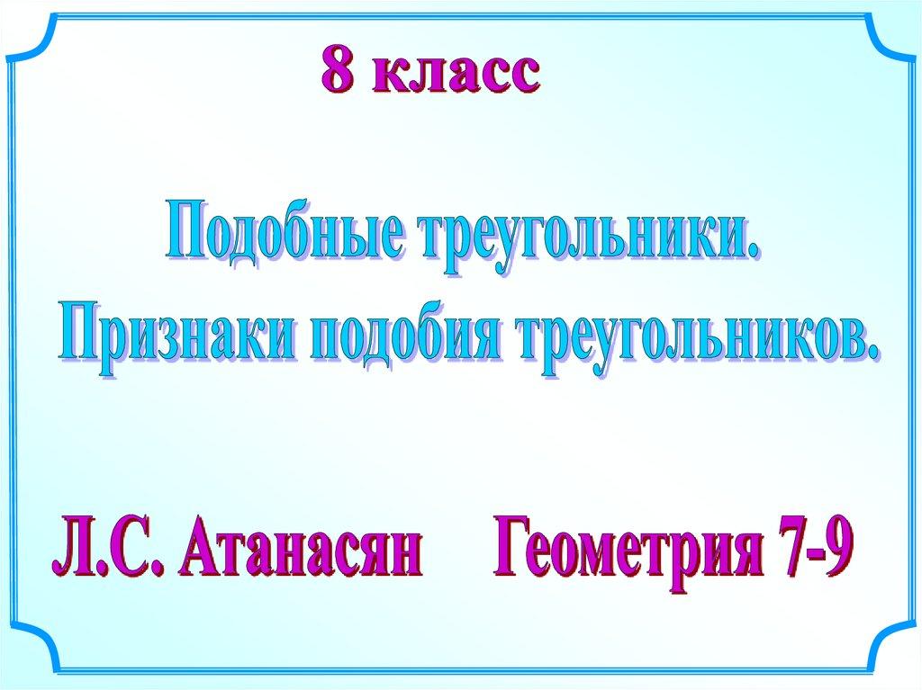 Подобные треугольников. Признаки подобия треугольников. 8 класс