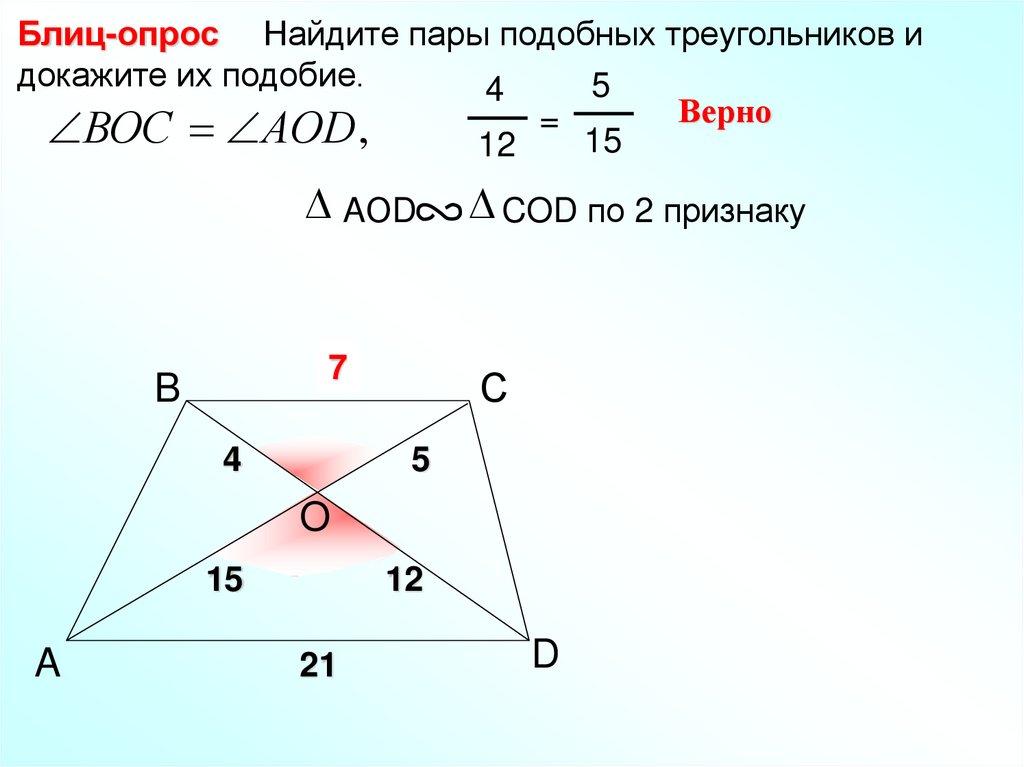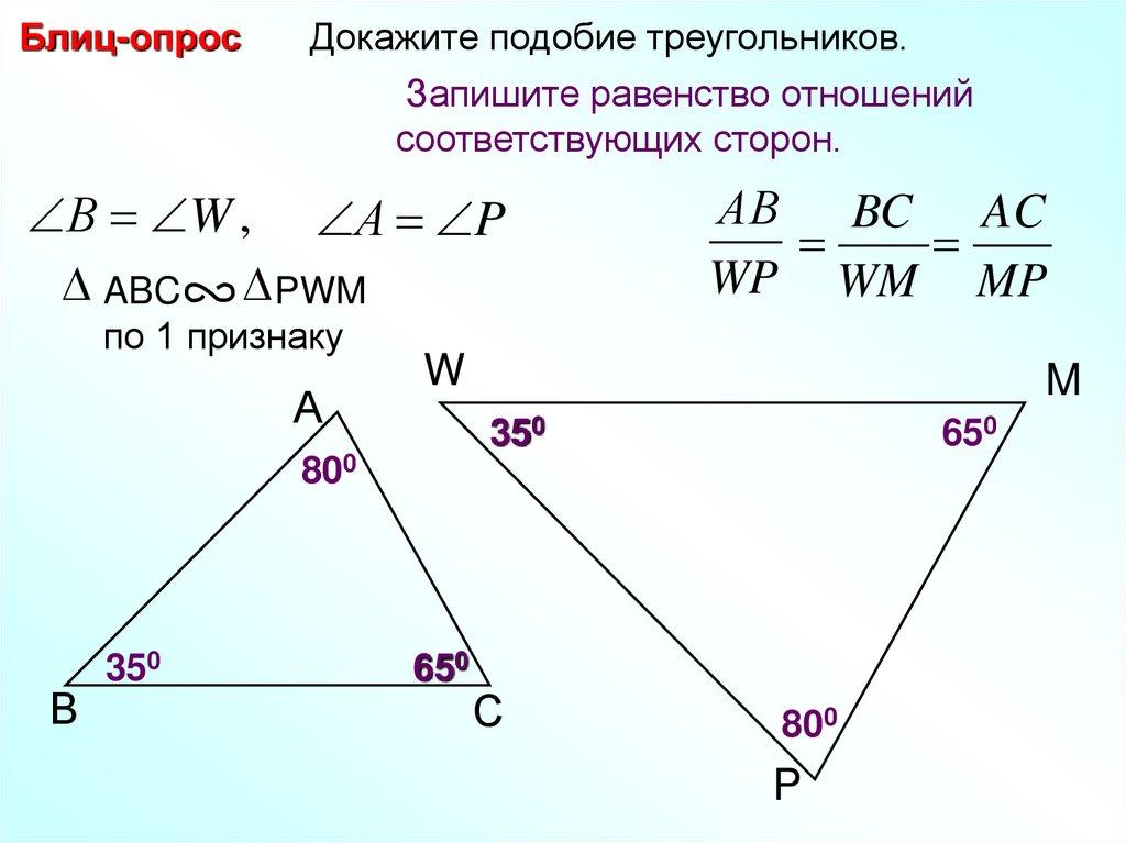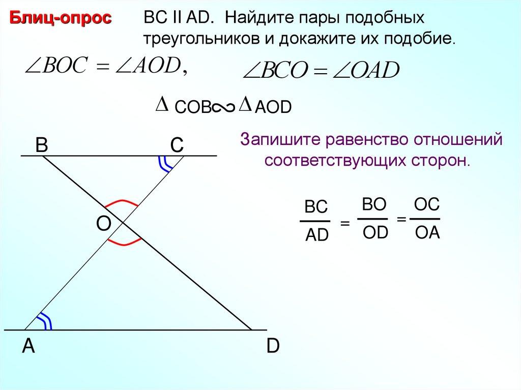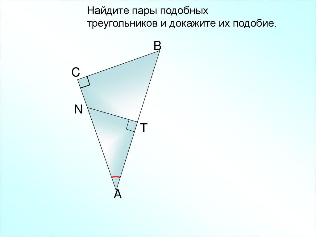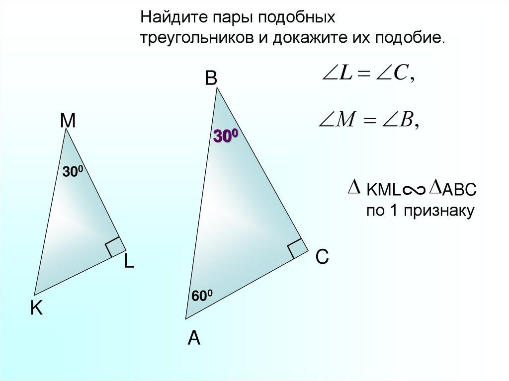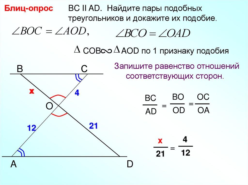 Блиц-опрос Найдите пары подобных треугольников идокажите их подобие.